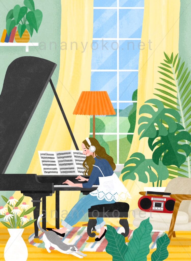 楽譜を手に取る時に、目に入る表紙。私のイラストが、ピアノの練習をする人の気持ちを少しでも明るく前向きにしてくれたら嬉しいです!